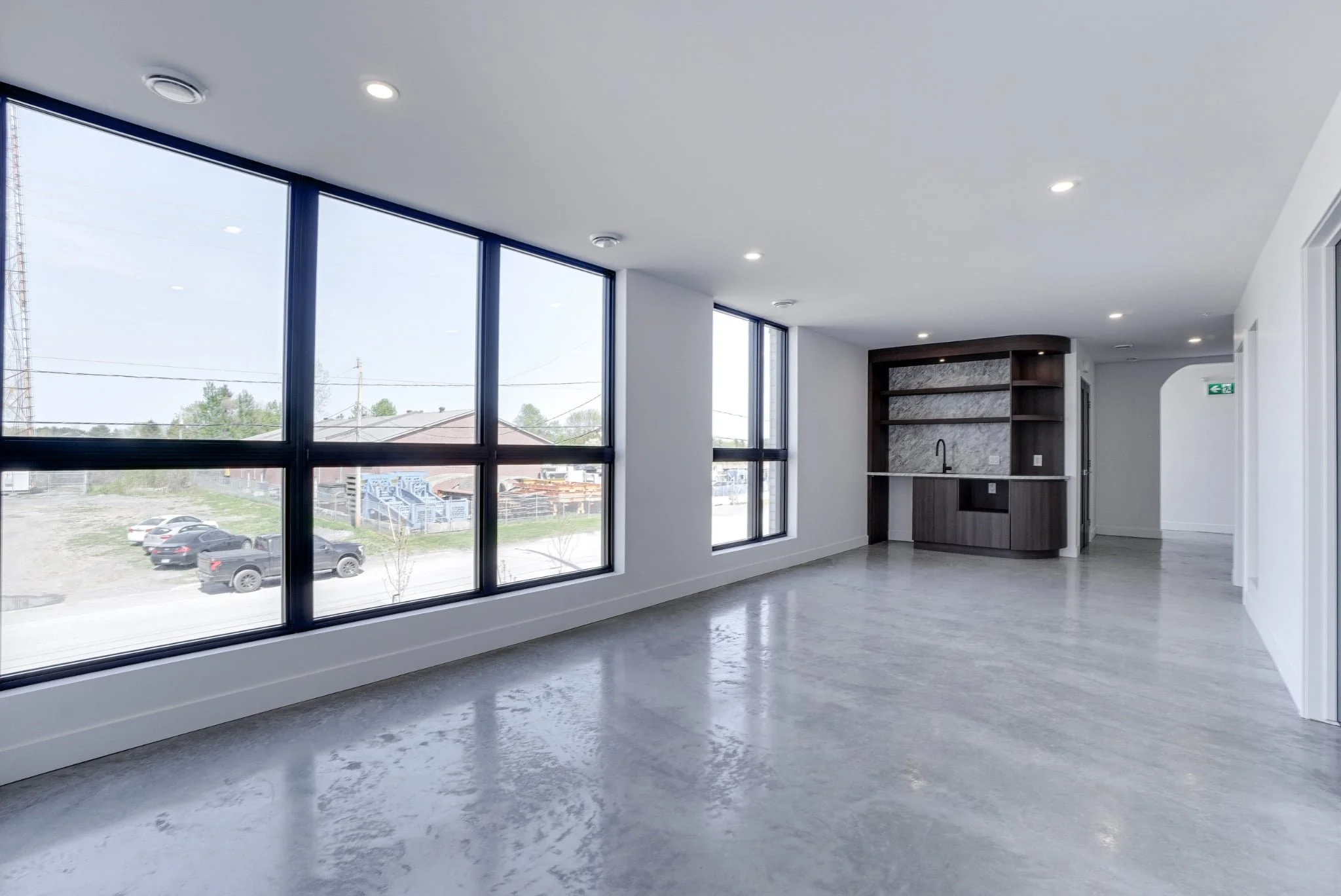 Possède 7800 pi2 au sol et 1560 pi2 à l'étage* L'immeuble est doté de 4 portes de garage de 12x14 pieds, 1 porte de 12x9 pieds et 5 salles d'eau. À l'étage, on y retrouve 1 salle de conférence, 6 bureaux, une cuisine et une salle à manger.